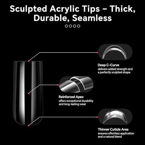 Save time with pre-shaped tips that deliver perfect curves quickly. Deep C-curve, full-cover design extends flat nails with a natural look, while durable ABS provides a smooth surface for easy design and long-lasting wear.