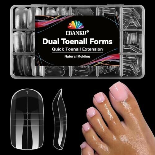 Kalolary 300 pcs Toe Dual Nail forms for Poly Extension Gel, Reusable Cover Molds 15 Sizes