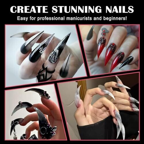 • Elevate your manicure with a bold, cat-claw dual form that creates dramatic, short 3D stiletto nails.