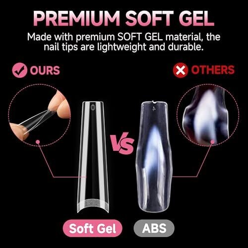 Gelly Soft clear glossy nail tips; designed to be ultra-light and compatible with nail extensions.