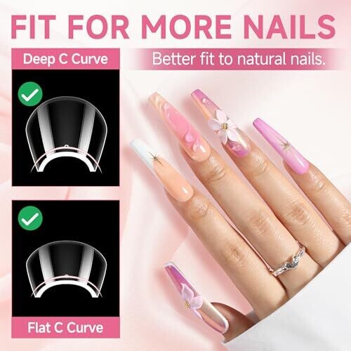 • Pre-shaped tips with a shallow curve for easy press-on application and secure adhesion, reducing the need for excessive filing.