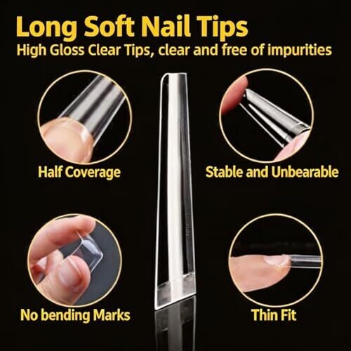• Clear, traceless tips that bend without leaving marks for seamless blending with your nail bed.