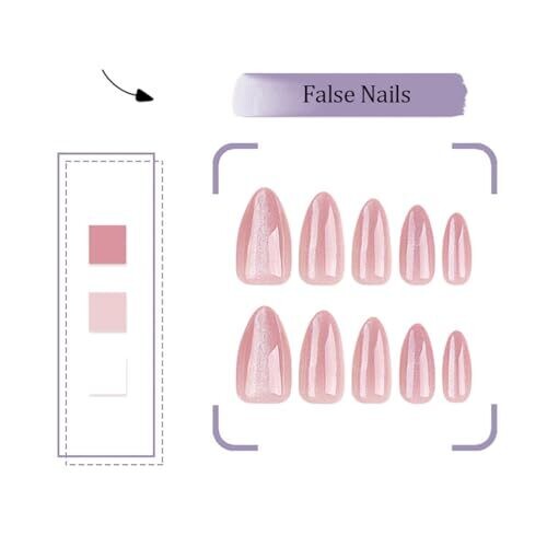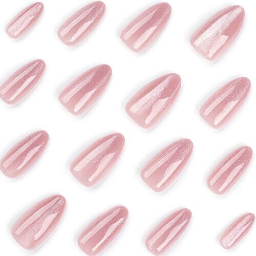 • 24-piece almond glitter press-on nails with a glossy pink cat-eye finish for a stunning, eye-catching look.