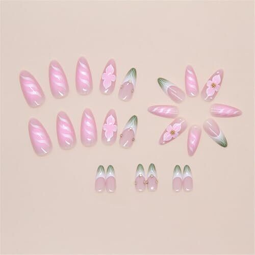 Elevate your manicure with a 24-piece almond press-on nail set featuring elegant French floral designs for a polished, salon-worthy look. Ready-to-wear acrylic nails offer a natural appearance, comfortable fit, and easy, mess-free application for daily wear or special occasions.