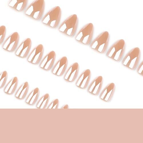Kavi' S 24 pcs Almond Stick-On Nails, Gothic Style Press-On Nails, Medium Length Stiletto Acrylic Gold Tip with Jelly Tabs