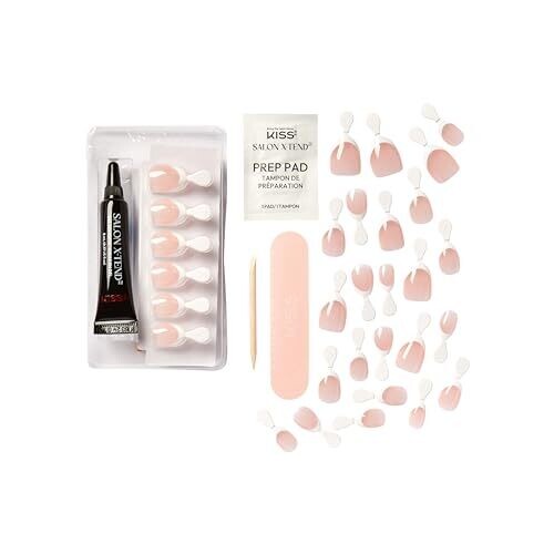 • Kiss Salon X-Tend Glue On Nails, Light White, Short Size, Almond Shape, 34 Ct