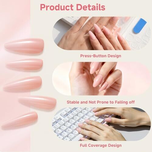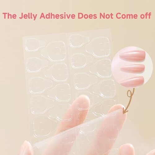 Salon-quality French design for timeless elegance, a short, comfortable fit ideal for daily activities. The 48-piece set includes jelly adhesive tabs for easy attachment, a neutral nude gradient with subtle glitter, and a lightweight, durable finish that stays shiny.