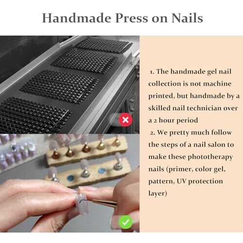 • Handmade press-on nails crafted by skilled manicurists for a salon‑worthy look at home.