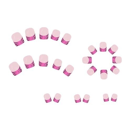 • Fpbiagoq Short Square Press Nails Sparkling Stripe Designs Covers French Tips