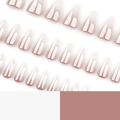 • Kaleidnail 30 pcs Aurora Almond Nails Pattern, Nude Glitter Press On Nails, Glossy Chrome Fake Nails