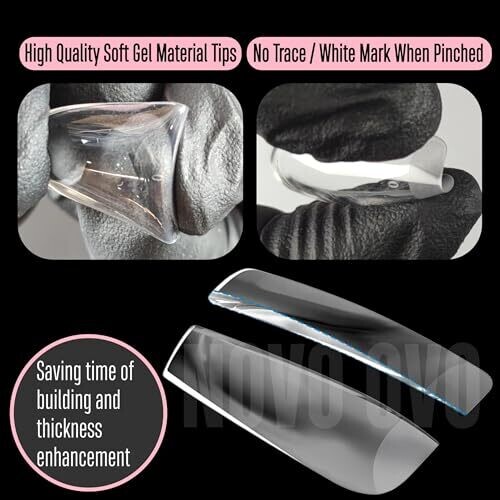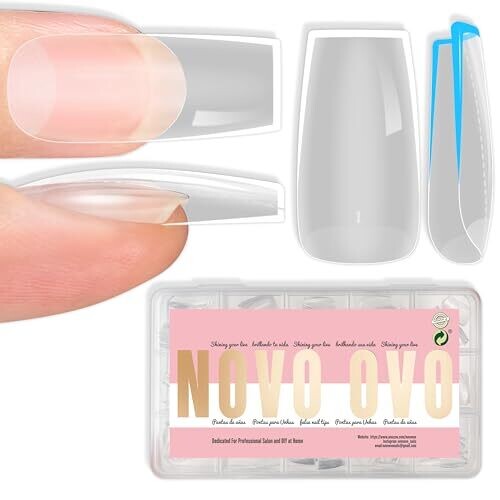 Novo Ovo Medium Nail Tips Extra Thick Press On No C Curve Soft Gel Clear 224 pcs