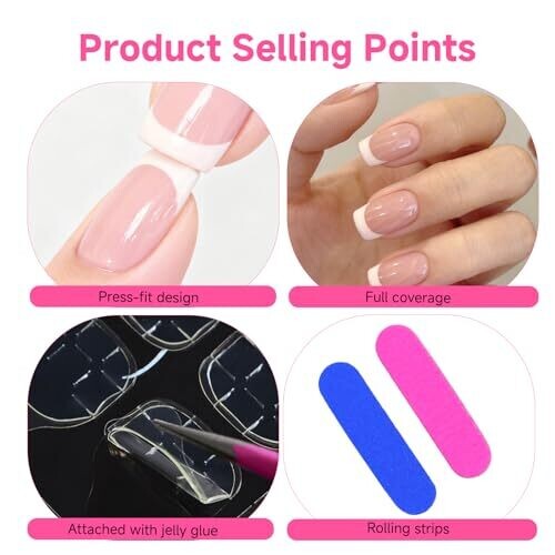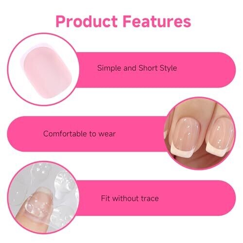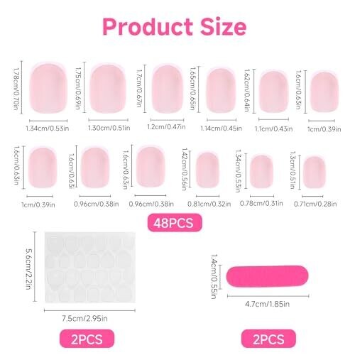 Get salon-worthy French tip nails at home with a timeless, elegant design. Short press-on nails provide all-day comfort, includes 48 nude French nails in 12 sizes for a precise fit, with jelly adhesive tabs for quick, damage-free application suitable for any occasion.