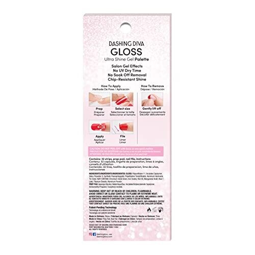 Dashing Diva Gloss Gel Strips - Girl Crush | UV Free, Chip Resistant | 32 Wraps, 1 Prep Pad, 1 Nail File
