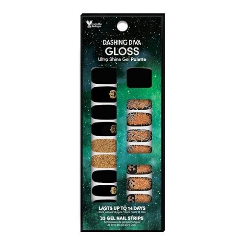 • Get salon-quality, glossy gel nails at home without the mess or dry time using Dashing Diva Gloss Twisted Nightmare strips.
