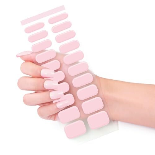 • Nka Semi-Cured Gel Nail Strips Kit 20 Strips In 10 Sizes Fast Cure (Baby Pink)
