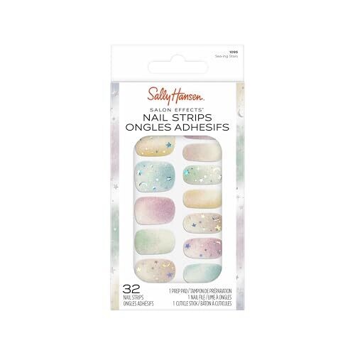 • Achieve salon-quality gel nail art at home with Sally Hansen Salon Effects Seaing Stars Rainbow printed strips.