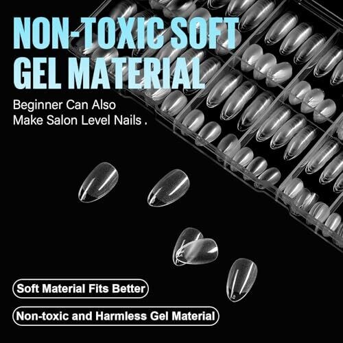TOMICCA Short Almond Soft Gel Nail Tips, 504 pieces, clear half-matte full-cover tips for nail extensions. Materials