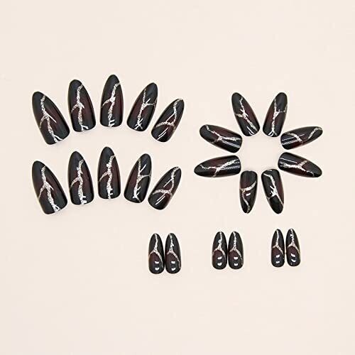 Elevate your style with a glossy black-red ombre finish and sparkly gold accents. Includes 24 medium almond press-on nails in 12 sizes with nail glue for a perfect fit. Quick, durable, reusable nails for everyday wear, date nights, or Goth looks.