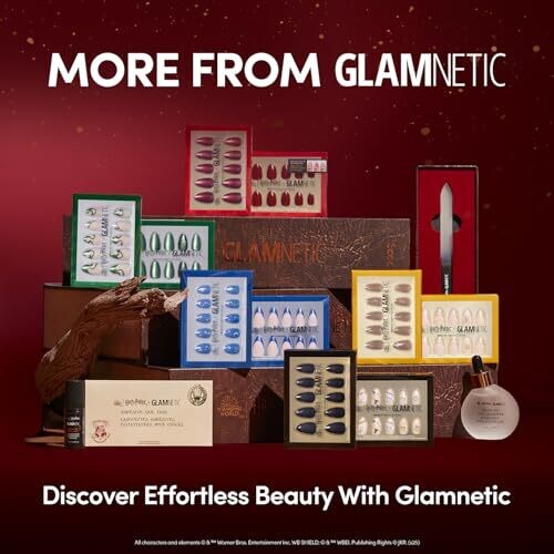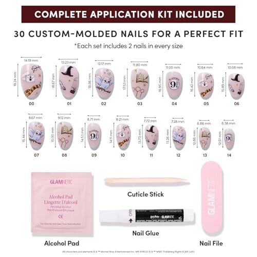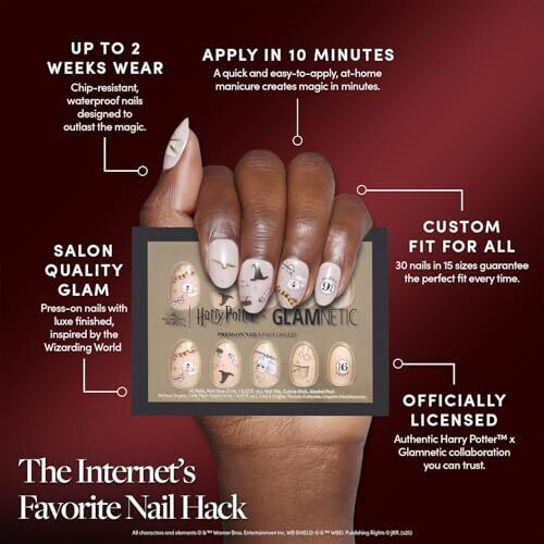 Harry Potter x Glamnetic Hogwarts-inspired semi-transparent nails for a magical, on-trend look. Easy, at-home salon-quality finish with a complete kit including glue, file, and storage box. Reusable up to 2 weeks per wear with simple trim or polish customization.