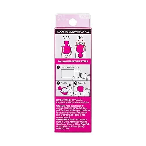 Enjoy a salon-quality pedicure at home with Kiss Impress No Glue Mani hot pink toenails. Peel-and-press application provides quick, mess-free wear, includes a manicure stick, prep pad, and file for precise fit and easy removal.