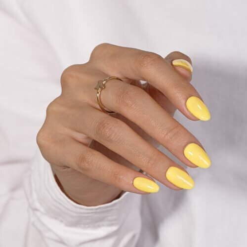Kqueenest Bright Yellow Press On Nails Short Oval - Acrylic Press On Nails, Almond Nails, 24 pcs