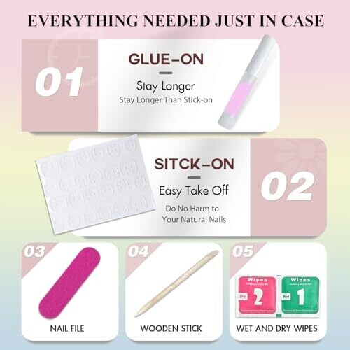 - Includes a complete DIY nail kit with 24 pieces in 12 sizes, plus adhesive tabs, a mini file, and a cuticle stick for convenience.