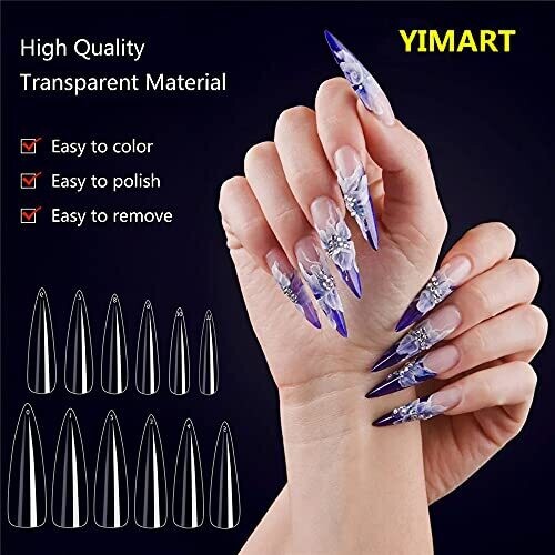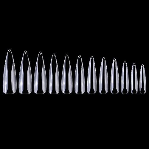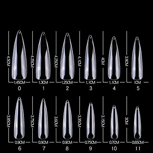 • Yimart 240pcs/Box Stiletto Full Cover Nails, 12 Sizes, 240 pcs, Clear Box