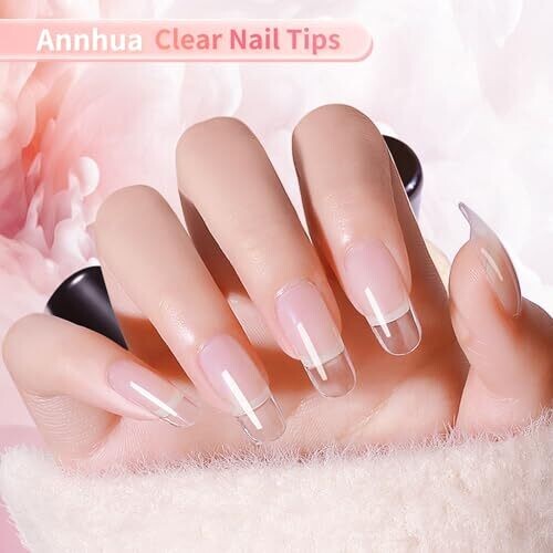 • Annhua Clear Short Oval Tips 500 Acrylic Cover False Nails 10 Sizes Soft Gel