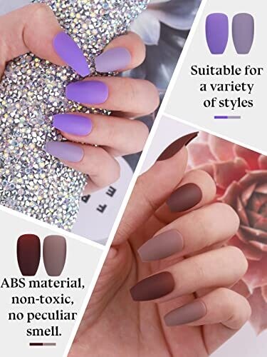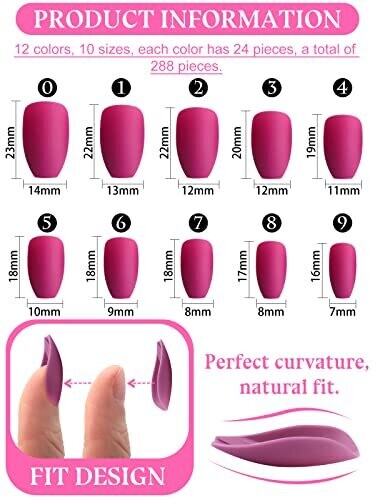 EBANKU 576 PCS medium coffin false nails set includes 24 colors stored separately for easy mix-and-match. With 10 sizes per color and durable, non-toxic ABS material, this matte full-cover ballerina set offers quick DIY at-home manicures for any occasion.