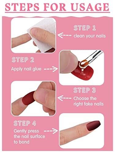 • Simple application: select the right size, apply nail glue or double-sided tape, and press for 20 seconds without needing gel polish.