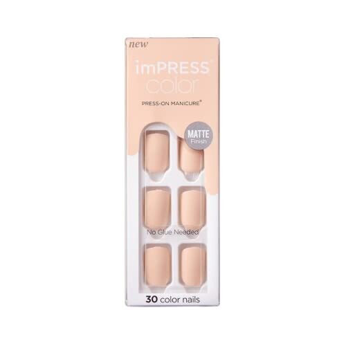 • imPRESS KISS Color Press-On Manicure offers a fashionable, ready-to-wear manicure with short, matte color for an effortless salon-like look.