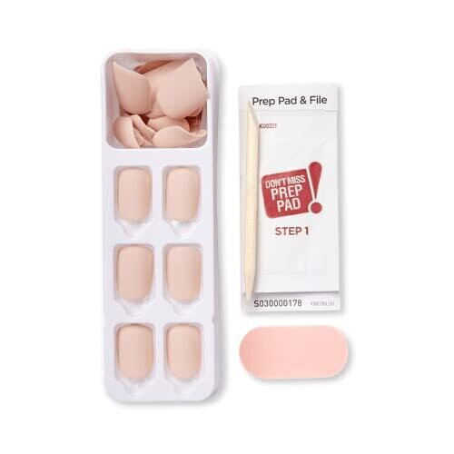 Ready-to-wear manicure with short matte color and no drying time. Includes 30 press-on nails in sizes for a quick, accurate fit, plus prep pad, mini file, and manicure stick for easy surface prep and handling. Long-lasting, natural feel without damaging nails. Suitable for busy lifestyles.