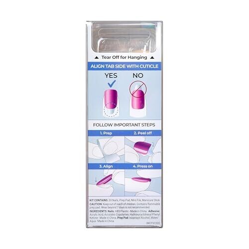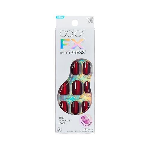 Kiss ColorFX by Impress press-on nails deliver a salon-worthy manicure in minutes, with a flexible, lightweight fit for a natural nail feel. Includes prep pad, mini file, and manicure stick. Lasts up to 7 days, cruelty-free, vegan, and reusable with care.