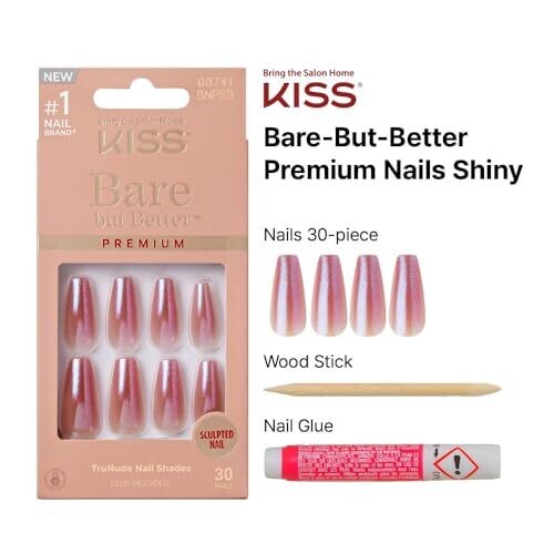 Kiss False Nails Kit, Ready-To-Wear Sculpted Nails, Stick and Glue Included, Long Length