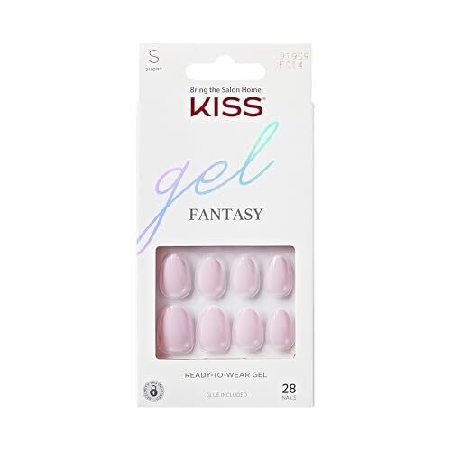 • Kiss Gel Fantasy 'Pure Love' (Light Pink), Short Size, Almond Shape, 28 Nails, 2G Glue, Mini File
