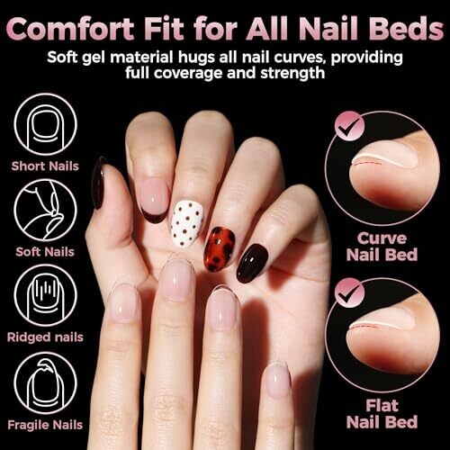 • High-quality full cover short oval nail tips for easy DIY manicures