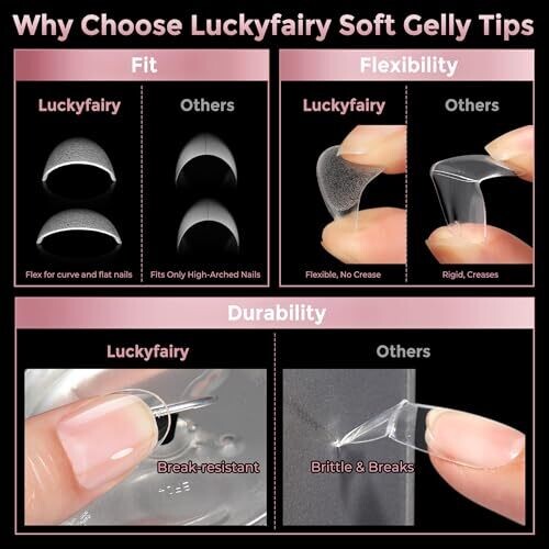 • Durable, break-resistant soft gel tips with long-lasting wear