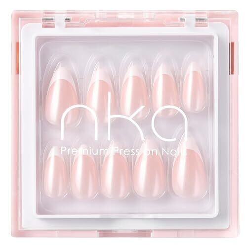 Nka Press-On Nails Kit, 30 Soft Acrylic Nails In 15 Sizes with Glue, Tabs & Prep Tools – Long-Lasting Salon Look (Blush Aura, Short Almond)