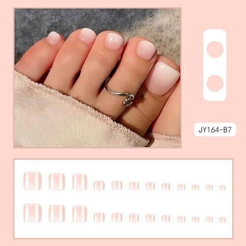 This 24-piece press-on toenail kit offers short square tips in assorted sizes for a natural, seamless look. Includes jelly glue stickers for quick, secure adhesion, plus lightweight ABS construction for comfort and summer-ready patterns to elevate your style.