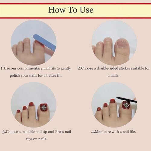 • Transform your look in minutes with a full press-on toenail kit designed for effortless wear.