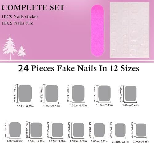 • Includes a complete set for DIY manicures: 24 press-on nails in 12 sizes, plus accessories to ensure a precise, customizable fit.