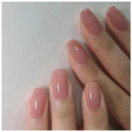 Teccfly 48 pcs Acrylic French Nails Short Press On Nude Tips Jelly Tabs DIY