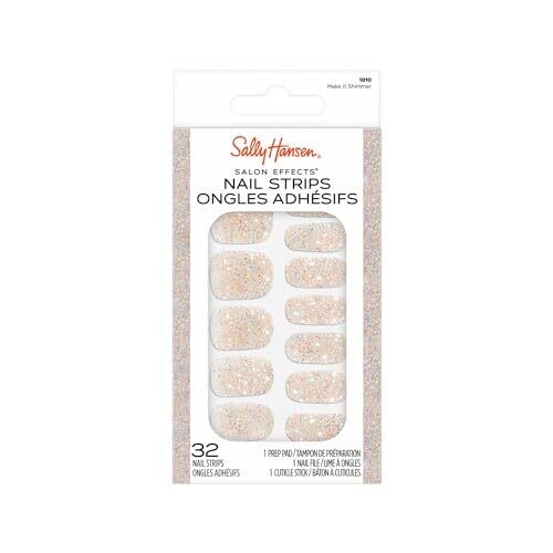 Achieve salon-grade nail art in minutes with Sally Hansen Salon Effects Make It Shimmer. No UV light or dry time—just apply for a flawless, long-lasting manicure. Flexible strips fit any nail, removable without damage or mess for easy, stain-free shade.