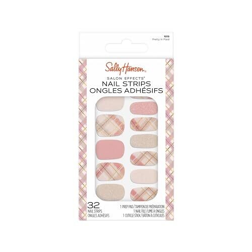Create salon-quality nail art in minutes with Sally Hansen Salon Effects Pretty In Plaid. No UV light or dry time needed—apply and wear instantly. Flexible nail strips fit any nail shape, resist chipping, and remove easily without damage.