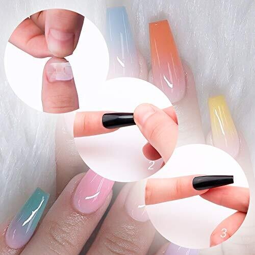 Achieve a bold, runway-ready mani with extra-long coffin-shaped press-on nails. Includes 100 pieces in 10 sizes for a perfect fit, with a sleek black base. Quick, tool-free application for home use or busy salons; durable yet lightweight.