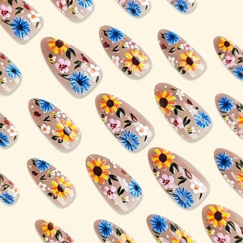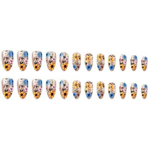 • Tizzyff Press On Nails Sonnenblume 3D Geprägte Nägel Für Frauen -24 Stück