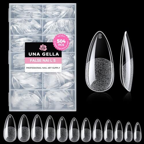 UNA GELLA Almond Gel Nail Tips, 504PCS Pre Etched Clear Fake Nails Tips. Shape