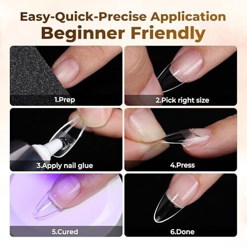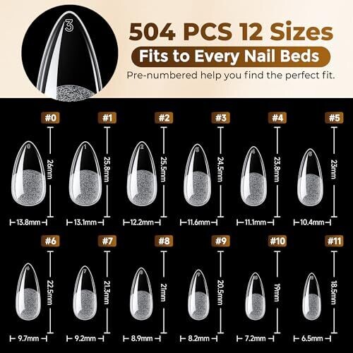 Achieve salon-like nails at home with clear, almond-shaped gel tips. Pre-etched full-cover tips for quick, precise application. Soft gel allows comfortable wear and easy shaping, compatible with polish, dip powder, and acrylics for DIY projects, with a wide size range.