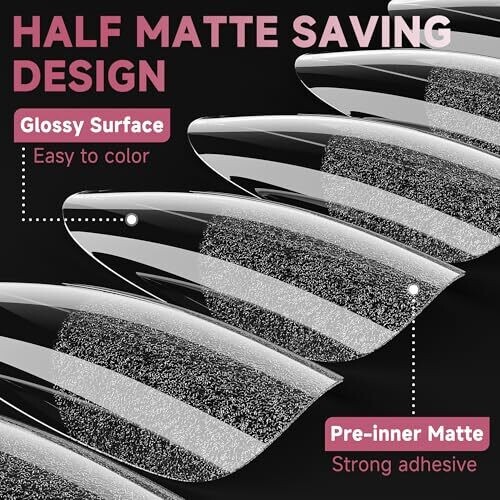 • Half matte gel nail tips with pre-shaped almond form for efficient filing and a clean, professional look.