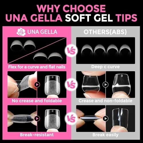 • Una Gella Extra Short Square Nail Tips XS 216pcs, Pre-Shaped Gel Tips, 12 Sizes